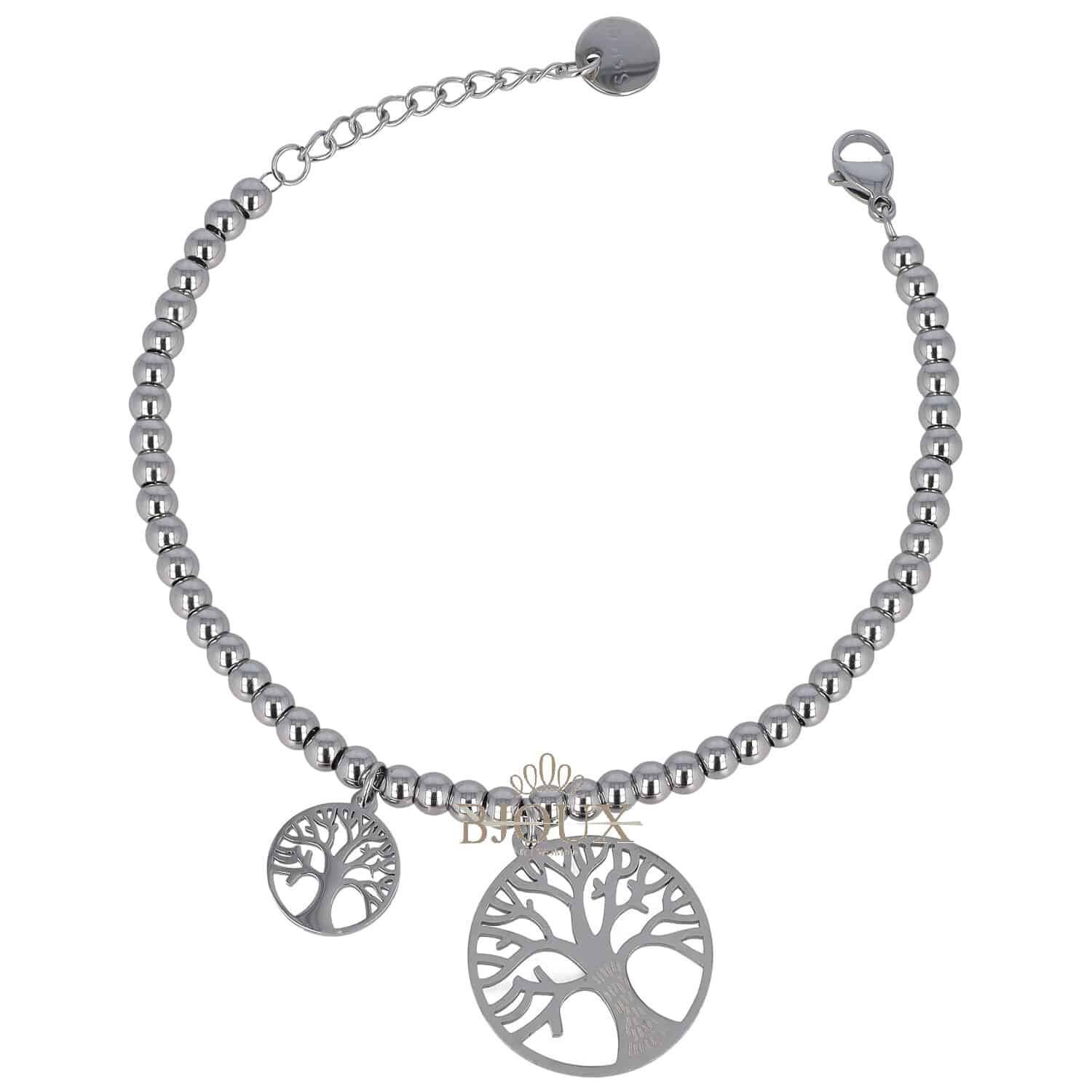 Bracciale in acciaio inossidabile a pallini con pendente albero della vita.